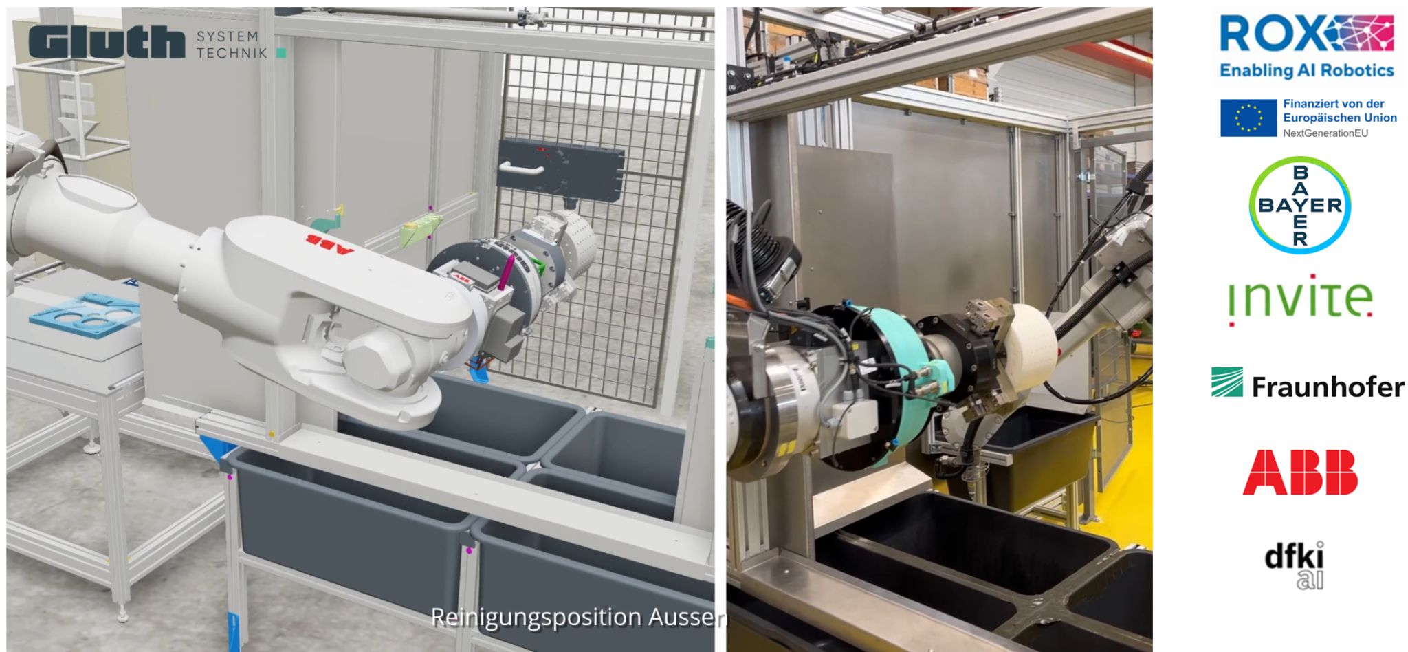 Im Rahmen des nationalen Forschungsprojekts RoX entwickelt Gluth eine KI gestützte Roboterapplikation inkl. Digital Twin für einen Reinigungsprozess in der Pharmaindustrie.
